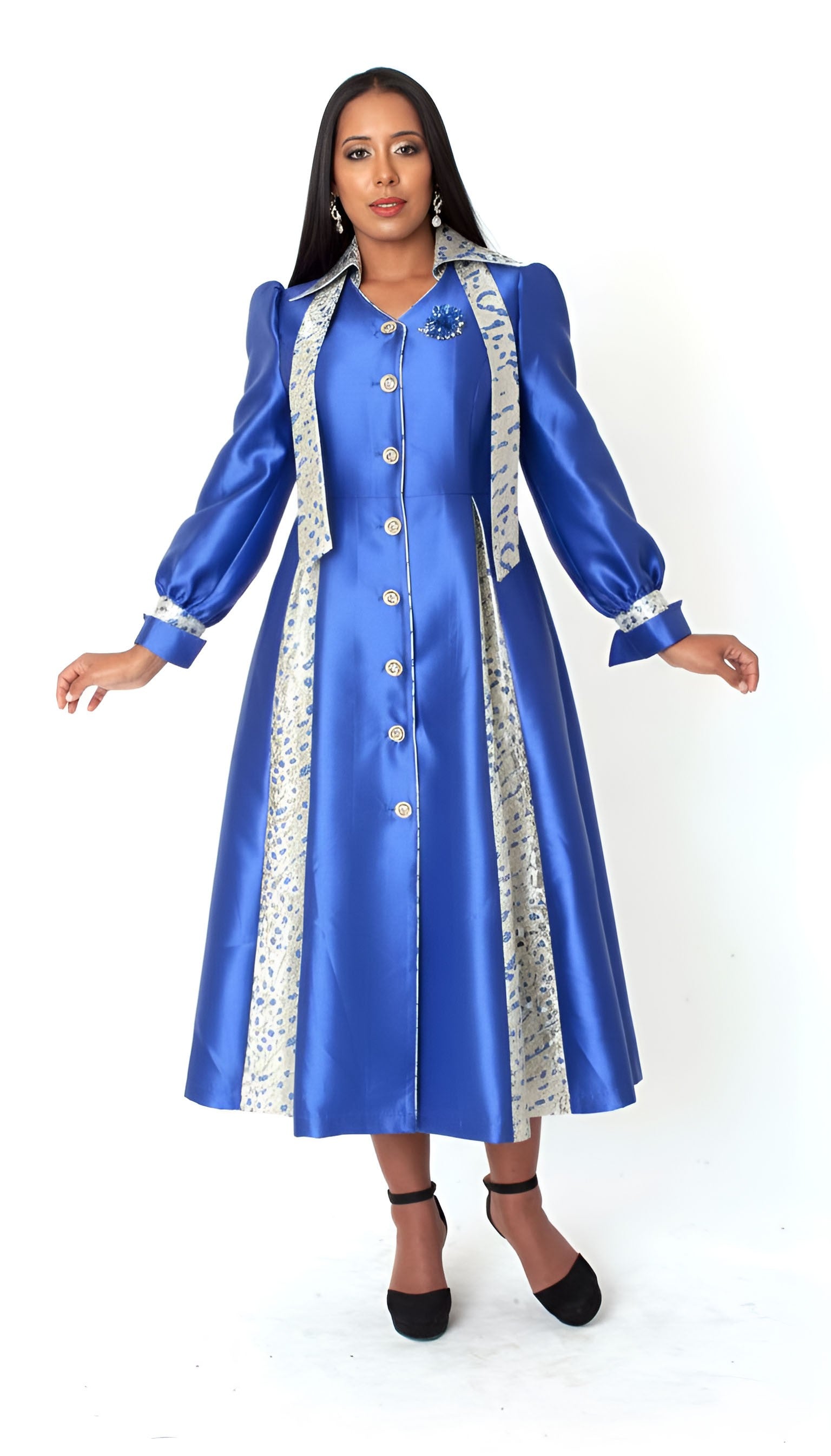 Elevate your ministry style with this elegant clergy robe dress featuring contrast printed panels, button-front closure, and a flattering A-line silhouette. Designed with long puff sleeves and tailored structure for church services and special occasions.