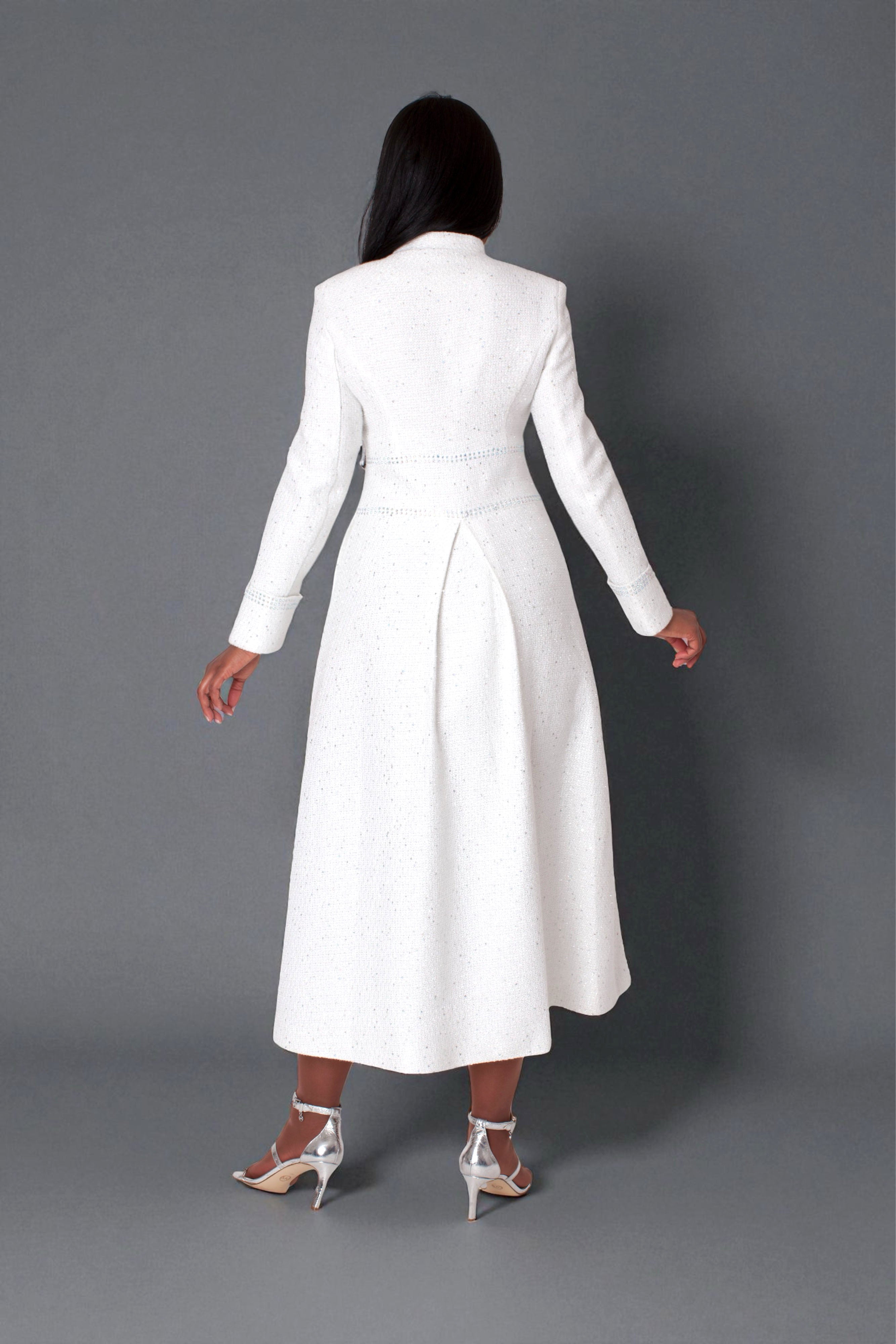 Exude sophistication in our Elegant Charm Tweed Robe, crafted in luxurious white tweed with crystal-trimmed buttons. A graceful, modest design perfect for church or any special occasion.