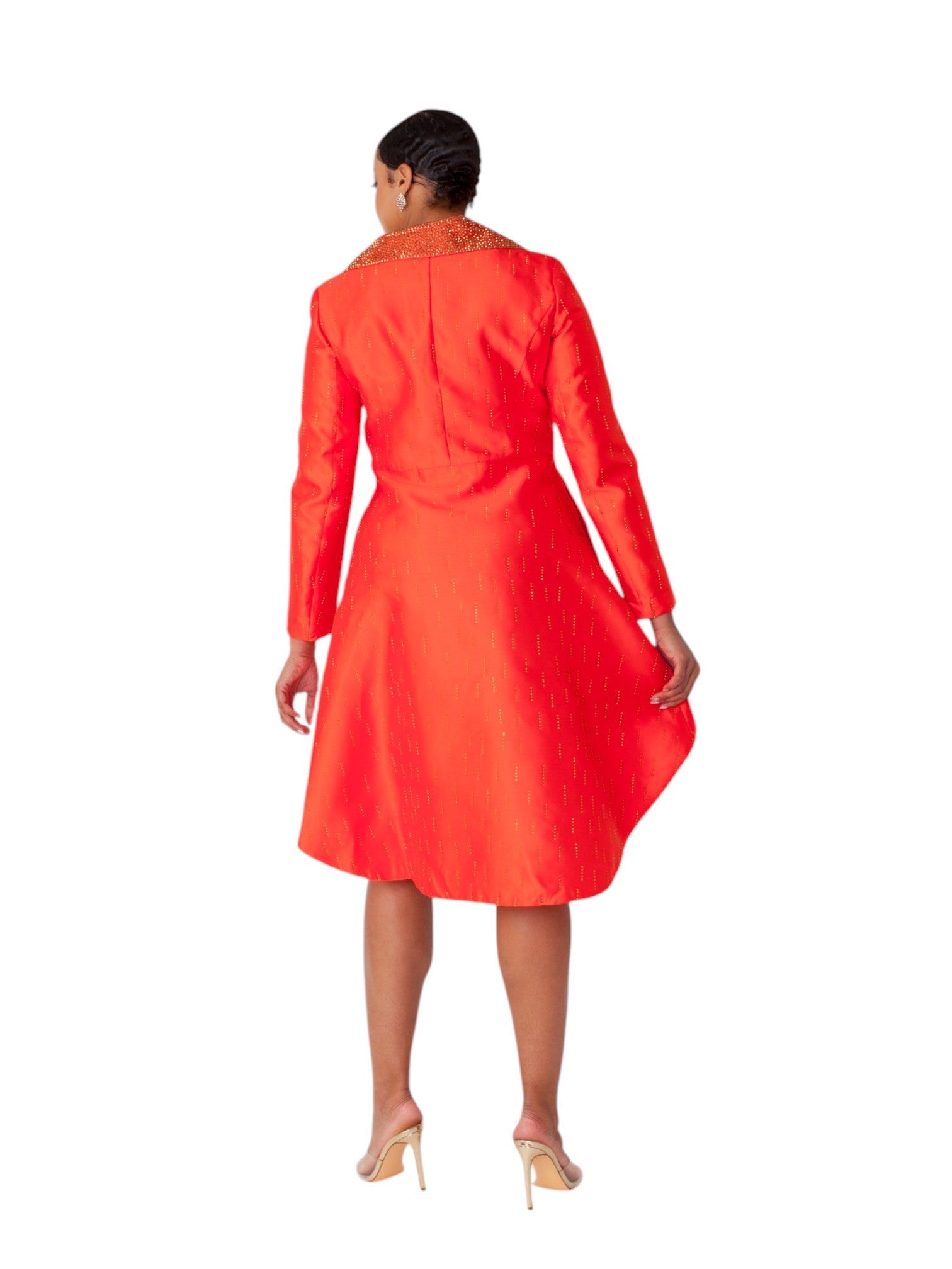 Step into elegance with this high-low church suit, now available in three stunning colors: royal blue, white, and red. Featuring a shimmering embellished collar and a flattering asymmetrical hem, this suit is designed to make you stand out at formal events and church services. The tailored jacket adds structure, while the flowing skirt brings a touch of grace and movement. Perfect for special occasions, it offers the ideal blend of sophistication and style.